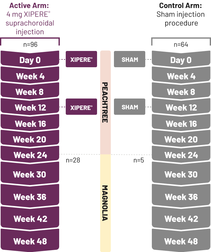 2.XIPERE® [prescribing information]. Alpharetta, GA: Clearside Biomedical, Inc.